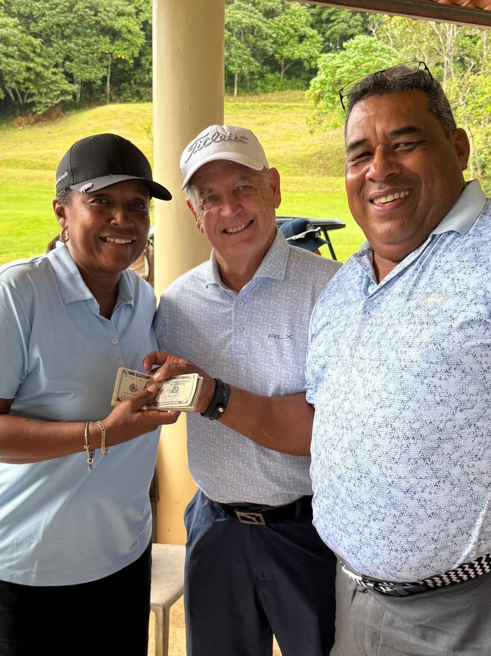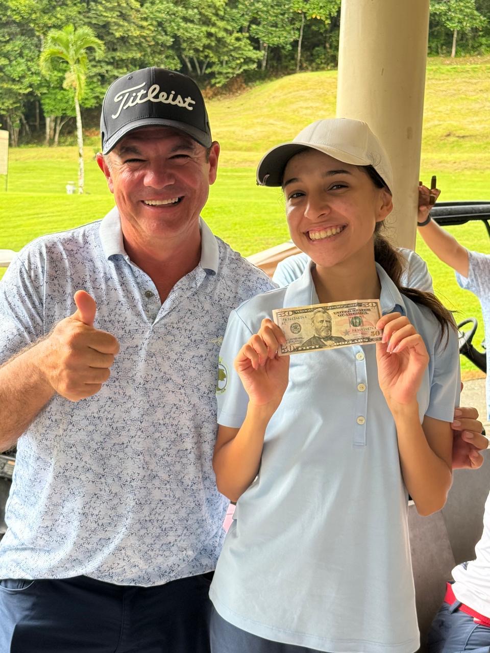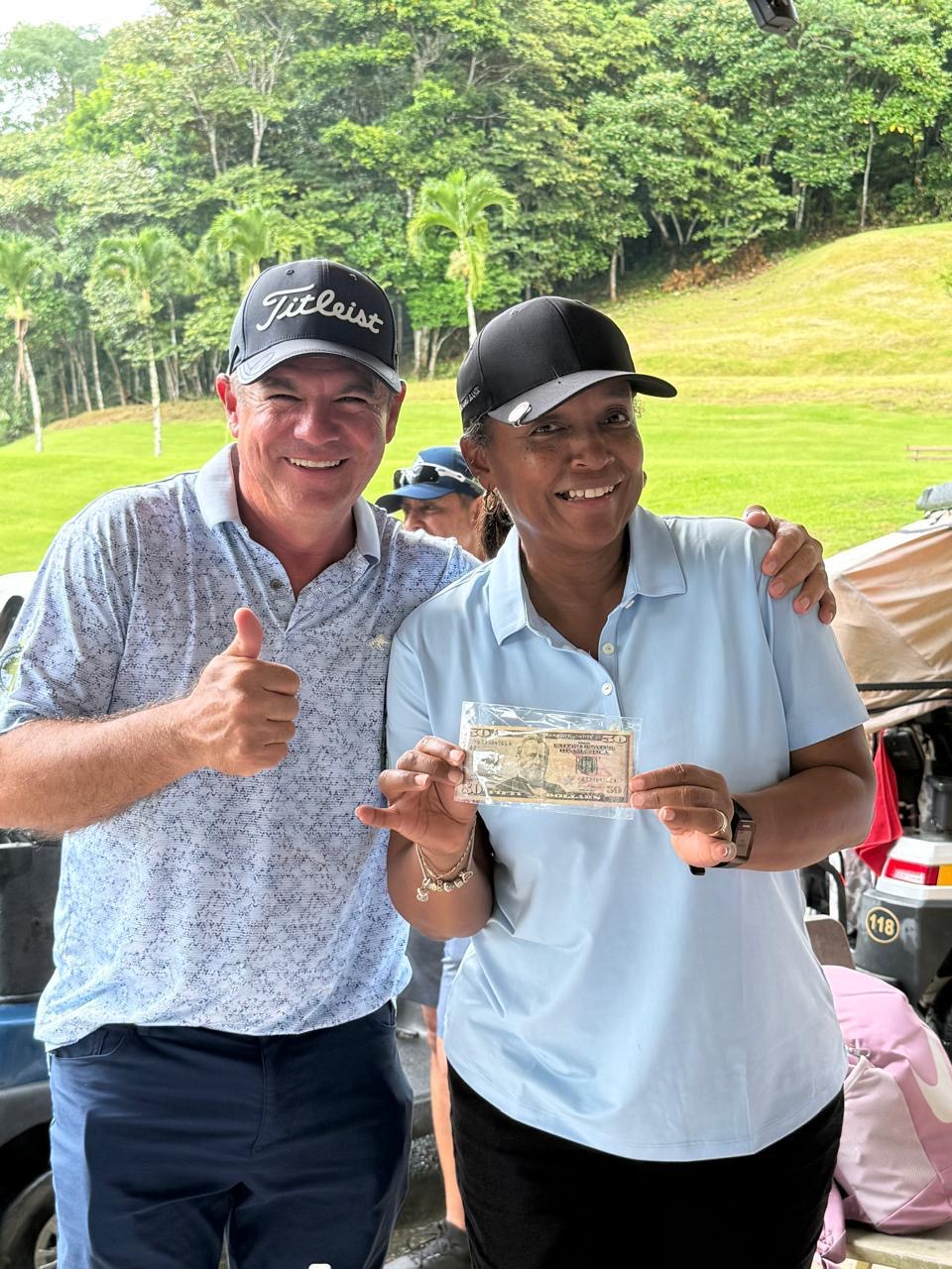 Ganadores del tradicional competencia del "Birdie"en el hoyo 9, Olga Brooks y Raul Orillac